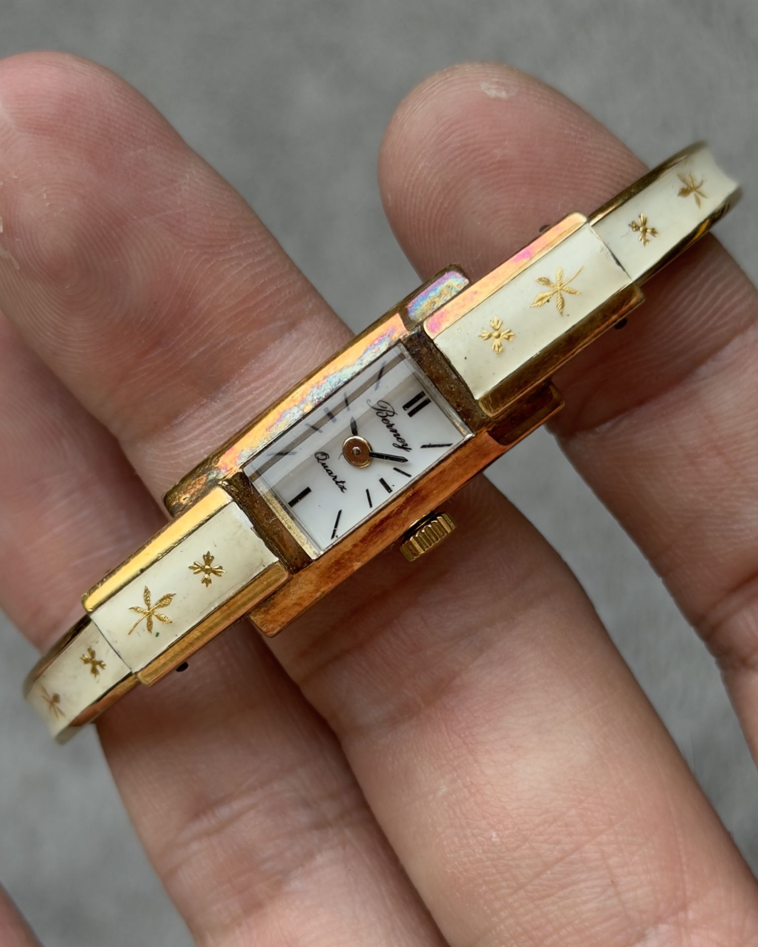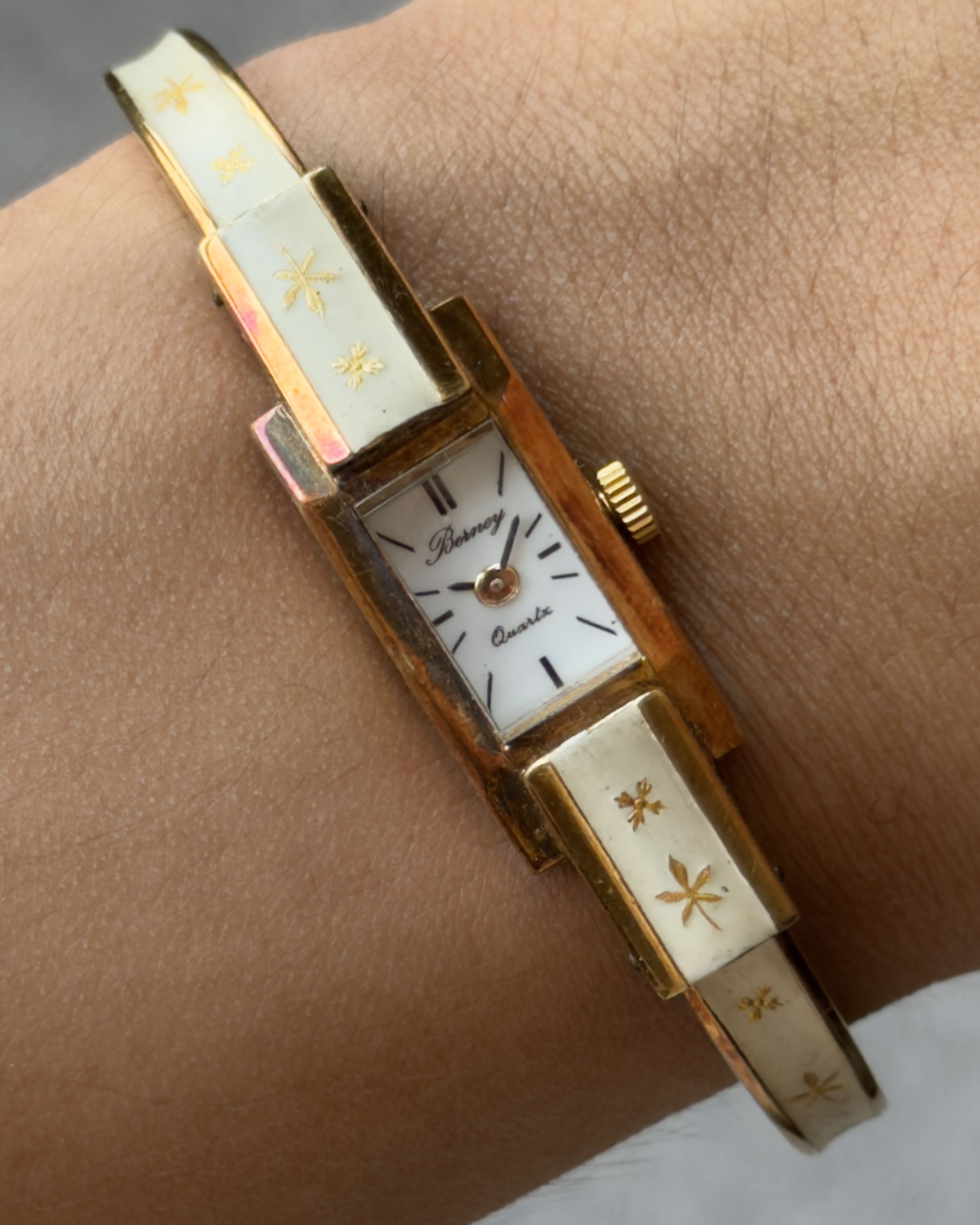 BERNEY IVORY BLOOM VINTAGE QUARTZ WATCH