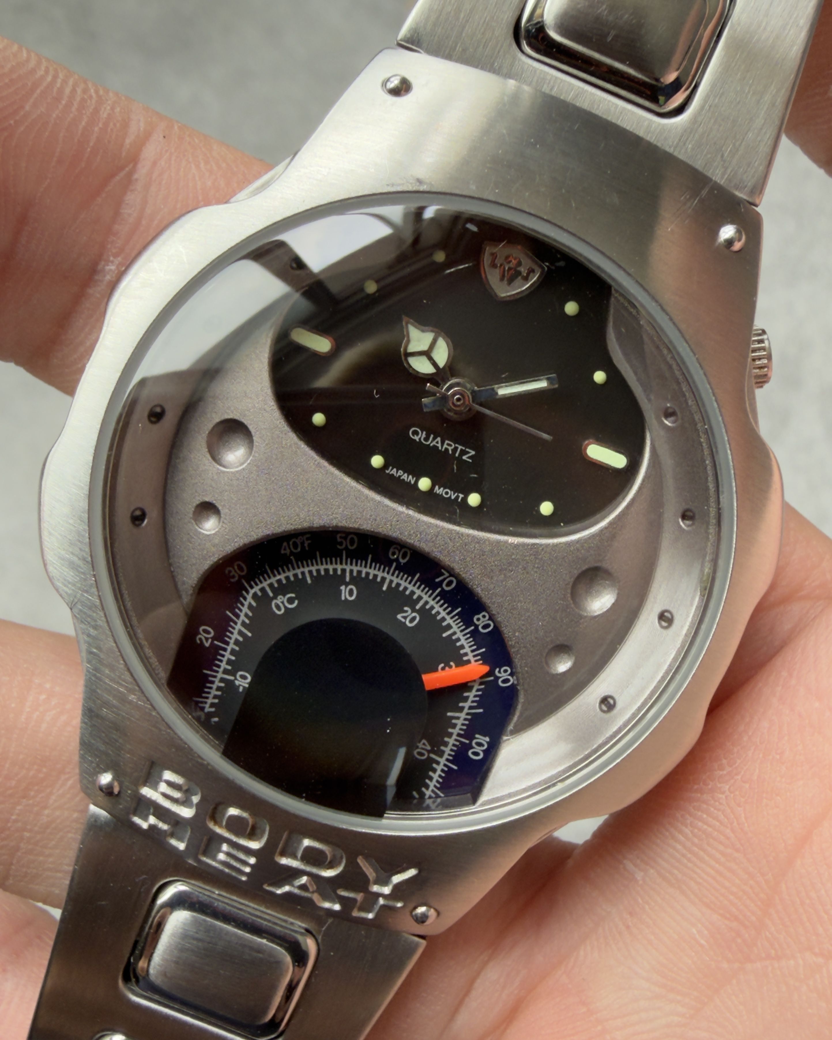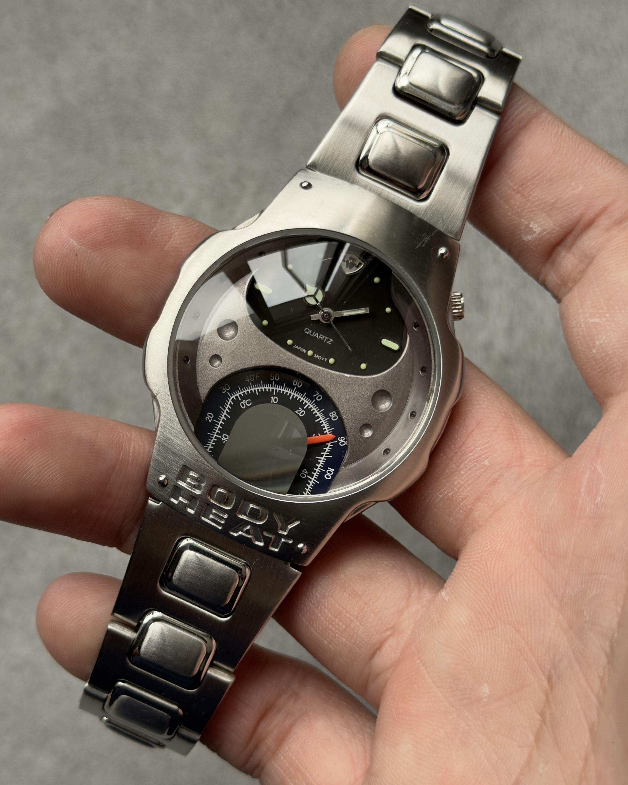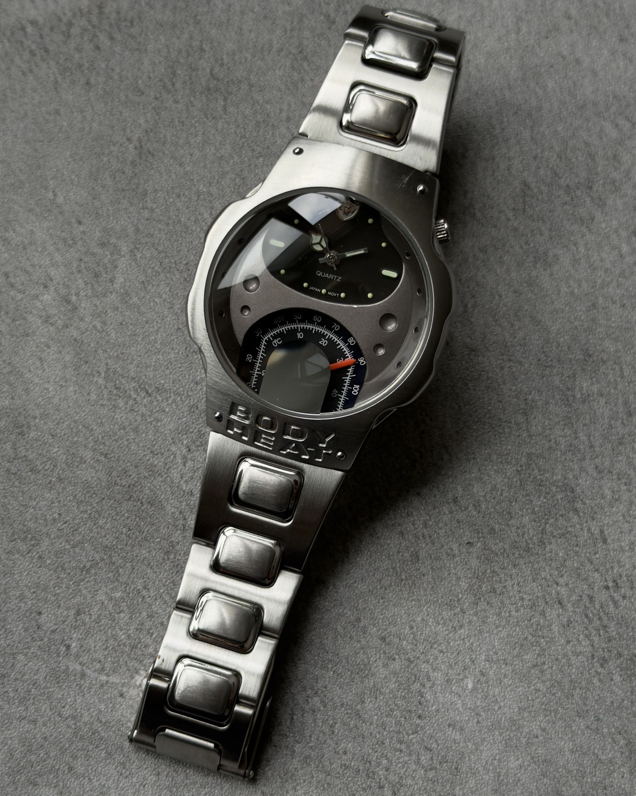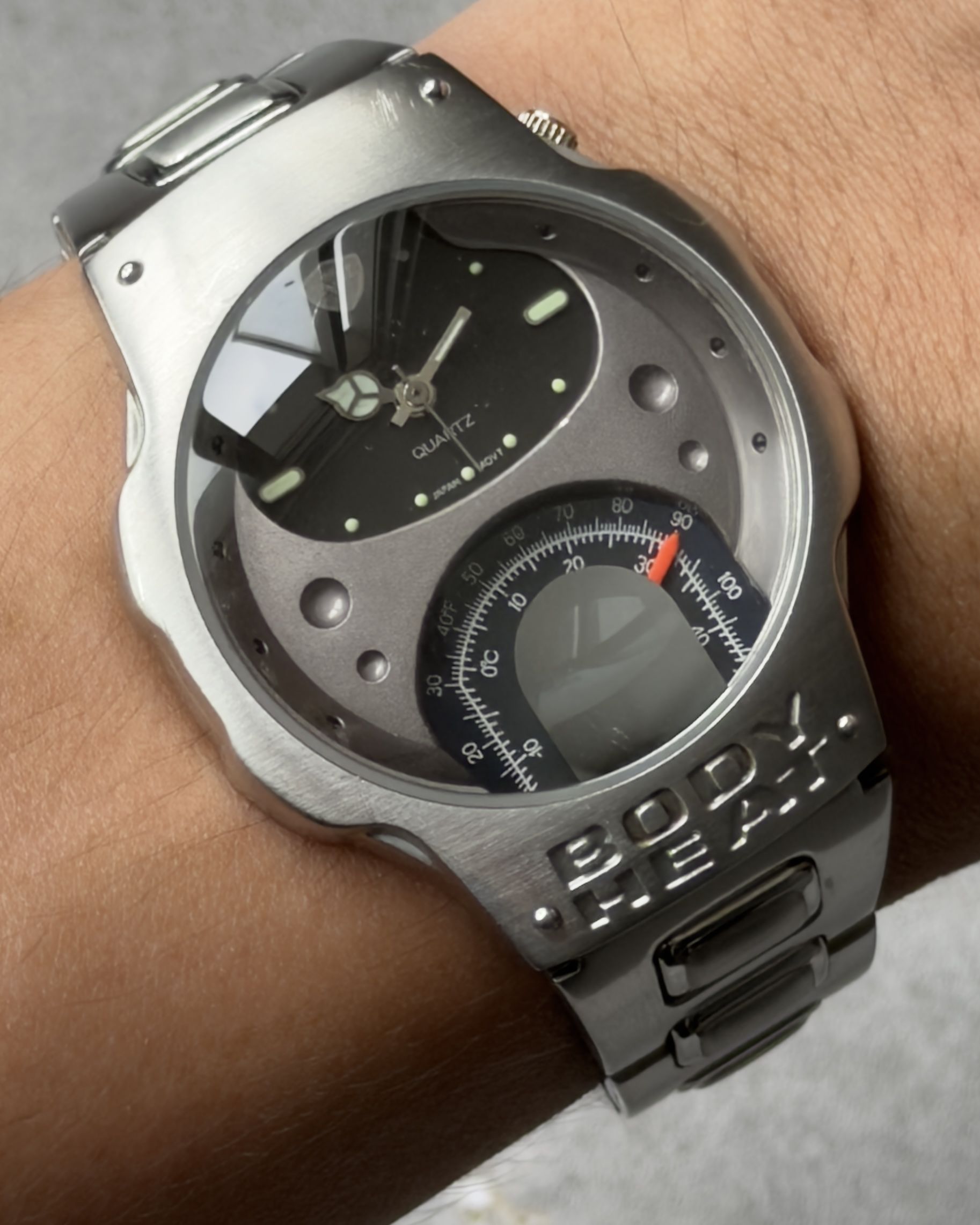 BODY HEAT THERMOMETER GAUGE DIAL VINTAGE QUARTZ WATCH