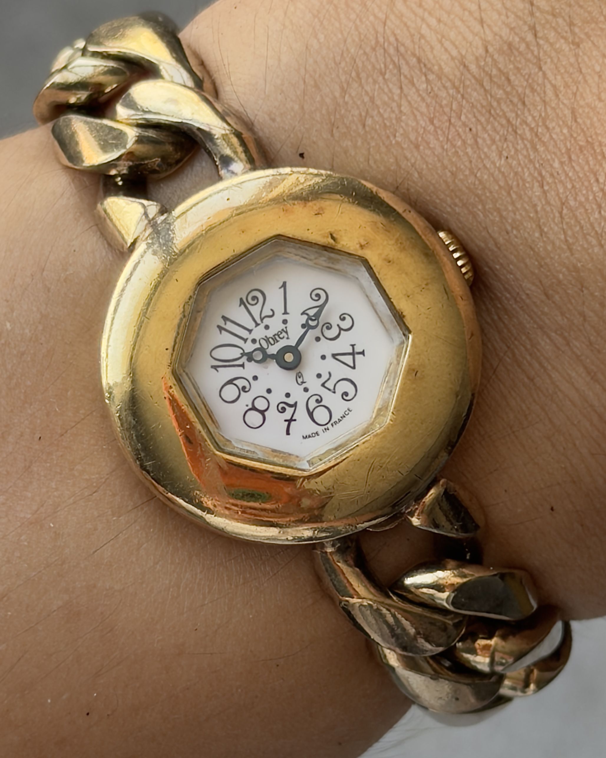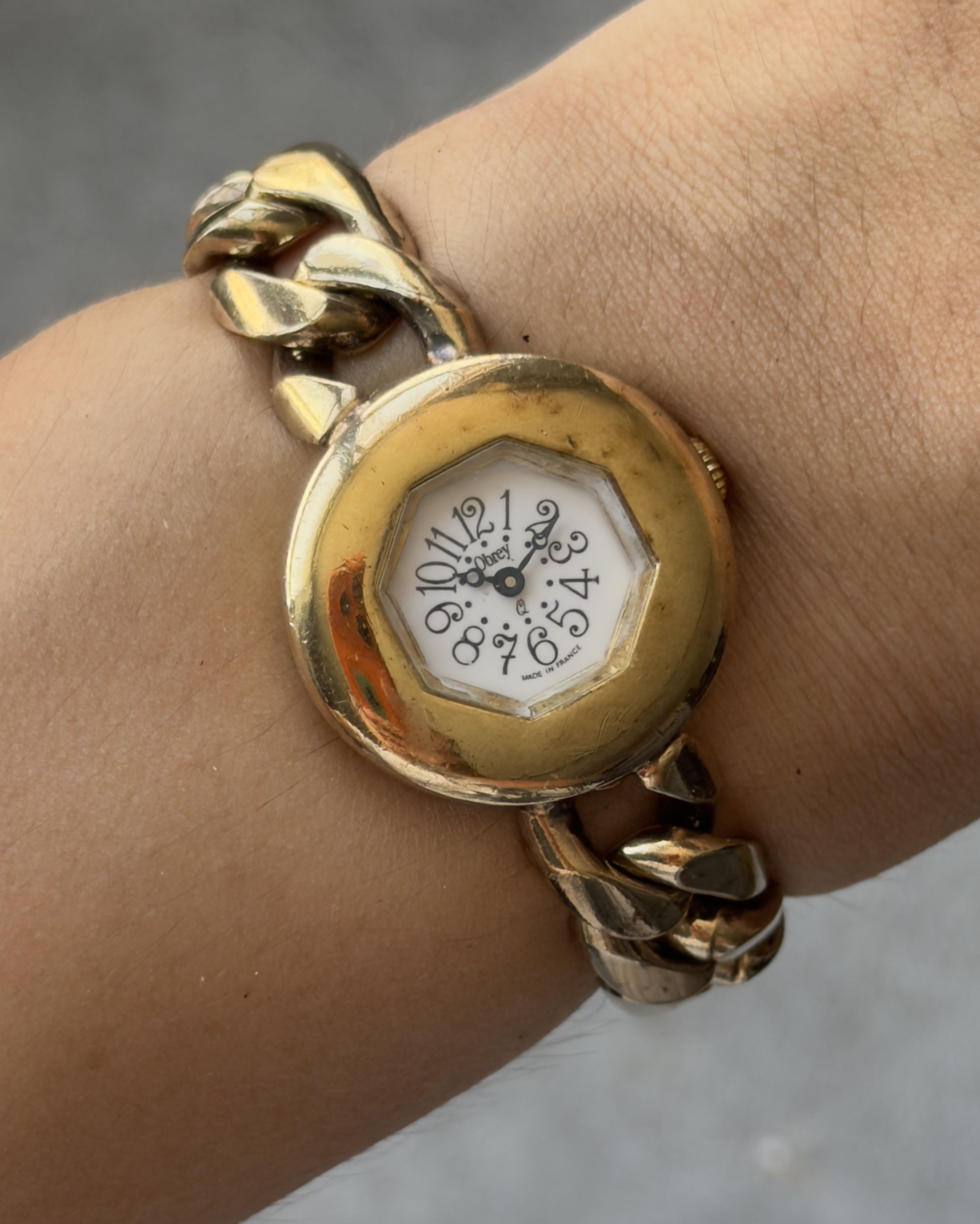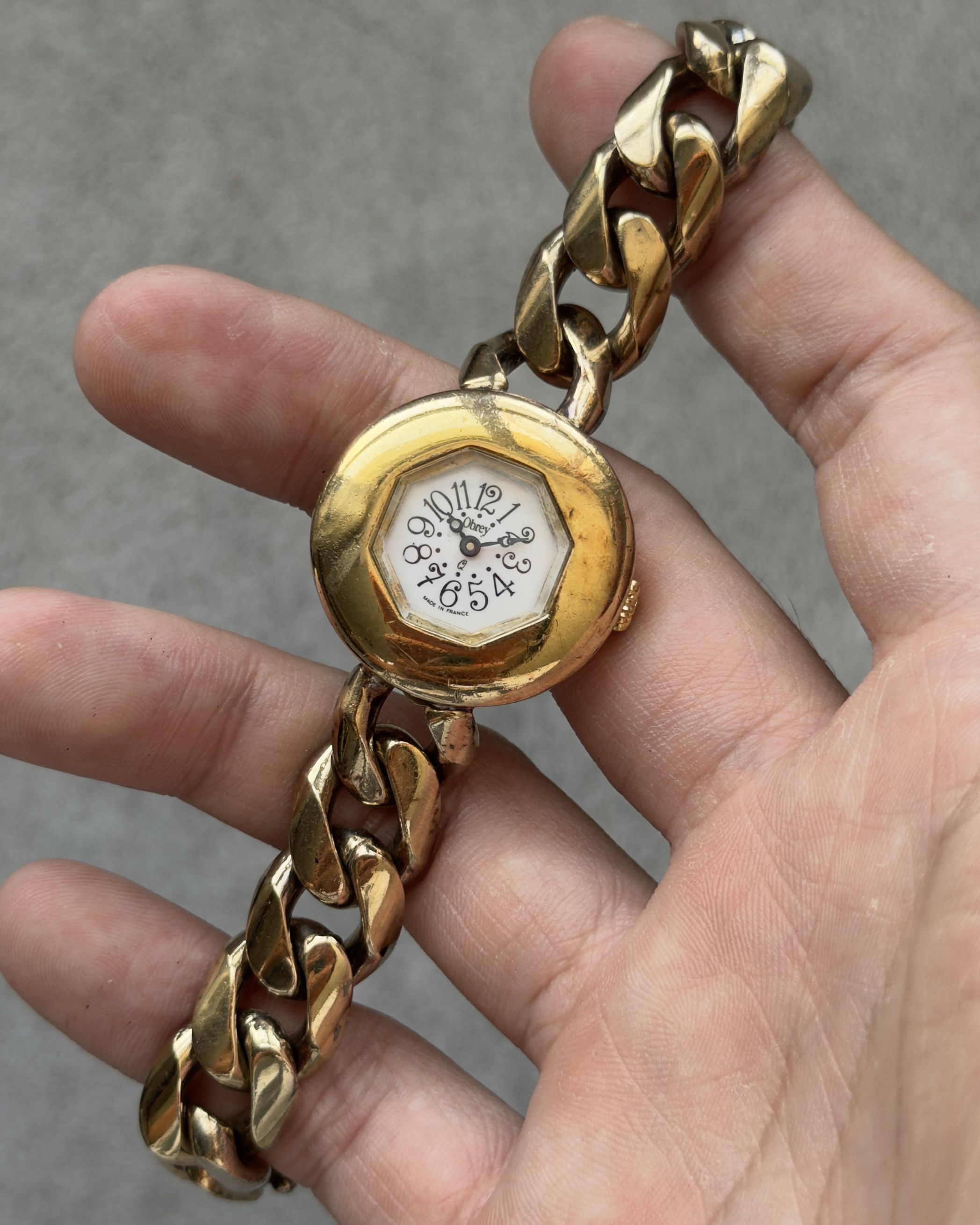 OBREY FRANCE ART DECO MINI CHAIN LINK WATCH BRACELET